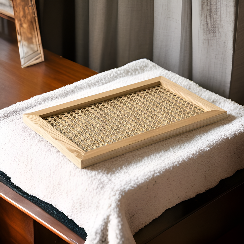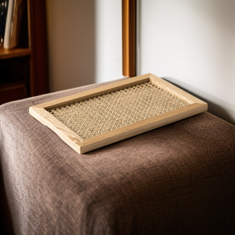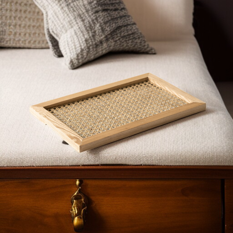 Handwoven Rattan Wooden Tray Handmade Serving Tray
