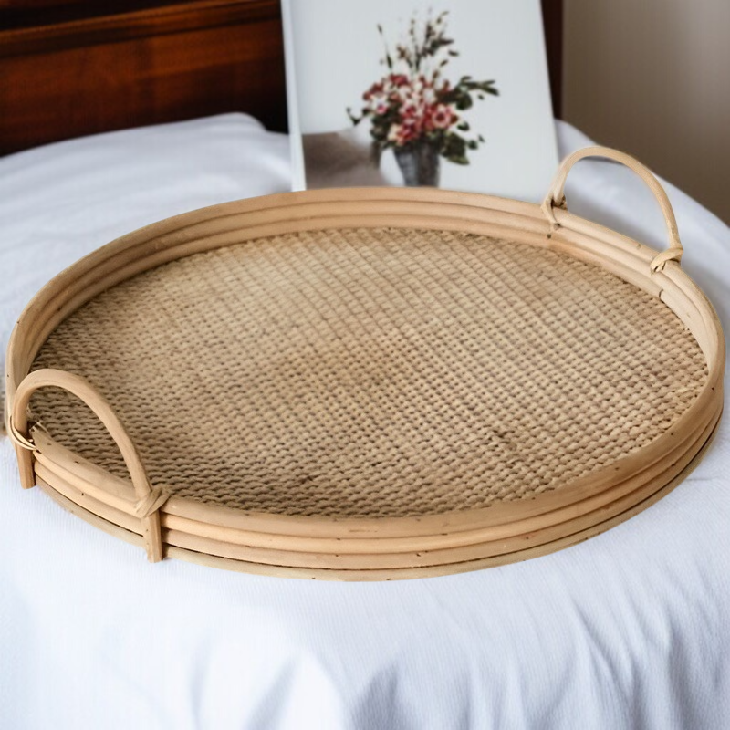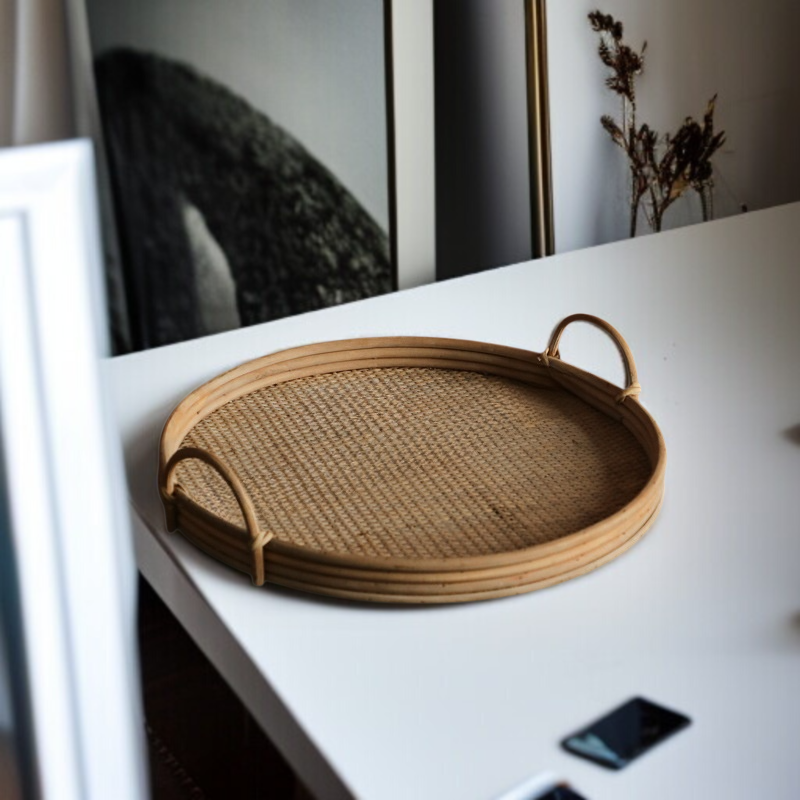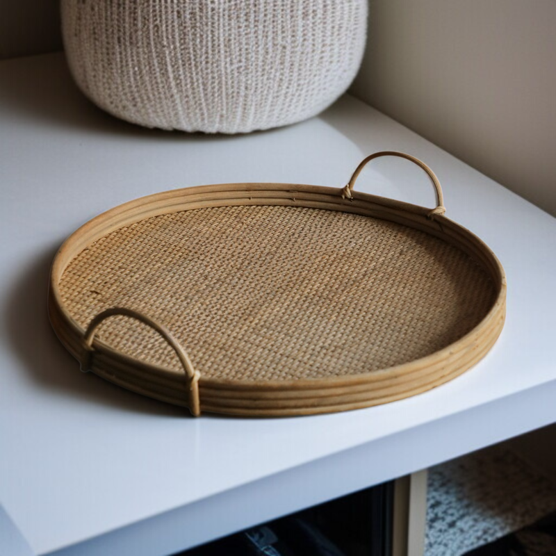 ● Handcrafted from natural rattan, this woven tray adds a touch of rustic elegance to your tea time or home décor, making every serving special. ● Durable and lightweight design ensures easy handling and long-lasting use, perfect for daily tea rituals or entertaining guests. ● Versatile multi-purpose tray can be used for serving tea, coffee, snacks, or as a stylish organizer for keys and accessories. ● Eco-friendly material and artisanal craftsmanship make this plate a sustainable choice for those who appreciate quality and nature. ● The intricate weaving pattern not only enhances visual appeal but also provides a non-slip surface for safe and secure serving.